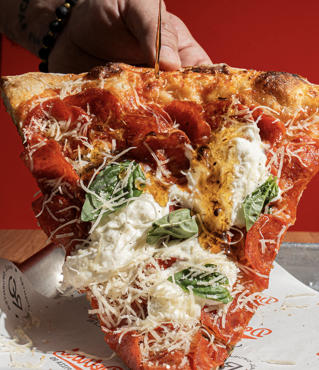 La María 2.0 Masa Detroit style, cheese blend 350g, stracciatella, miel picante, miel trufado y parmesano