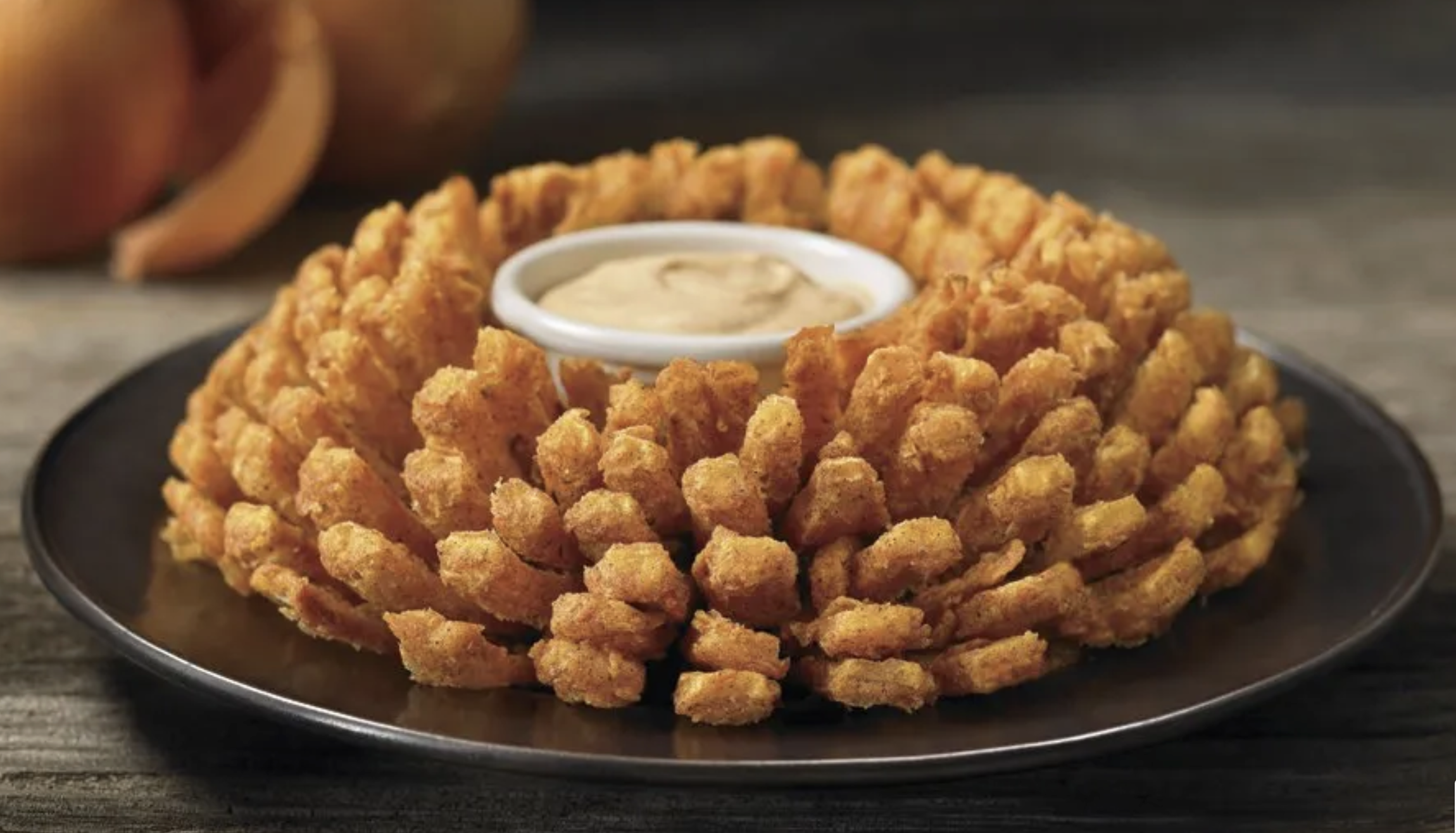 Bloomin' Onion ¡Un original de Outback! Gigantesca cebolla cortada a mano, cocinada hasta dorarla a la perfección. Servida con nuestra salsa de mayonesa y rábano. |
